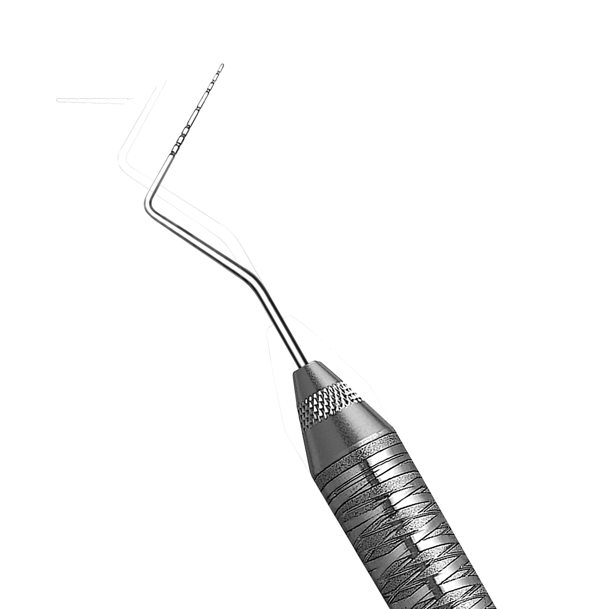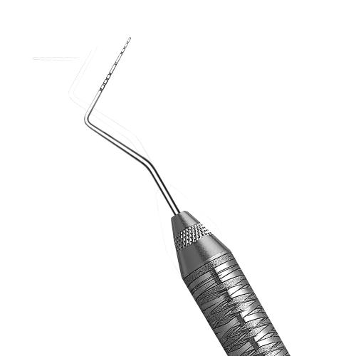 Double-ended instrument with an explorer on one end and a probe on the other. Ergonomic handle. Thin Williams.