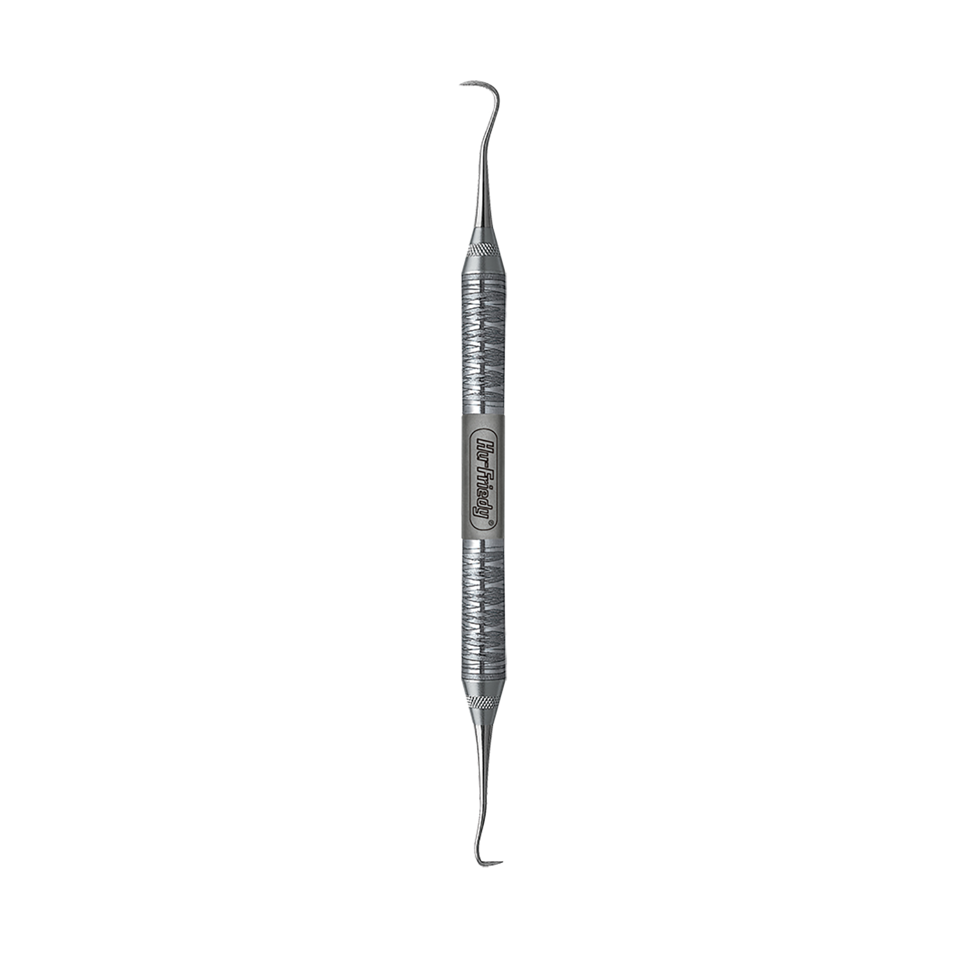 Super-thin sickle scaler combined with a straight sickle blade. Double-ended, easy-grip handle.