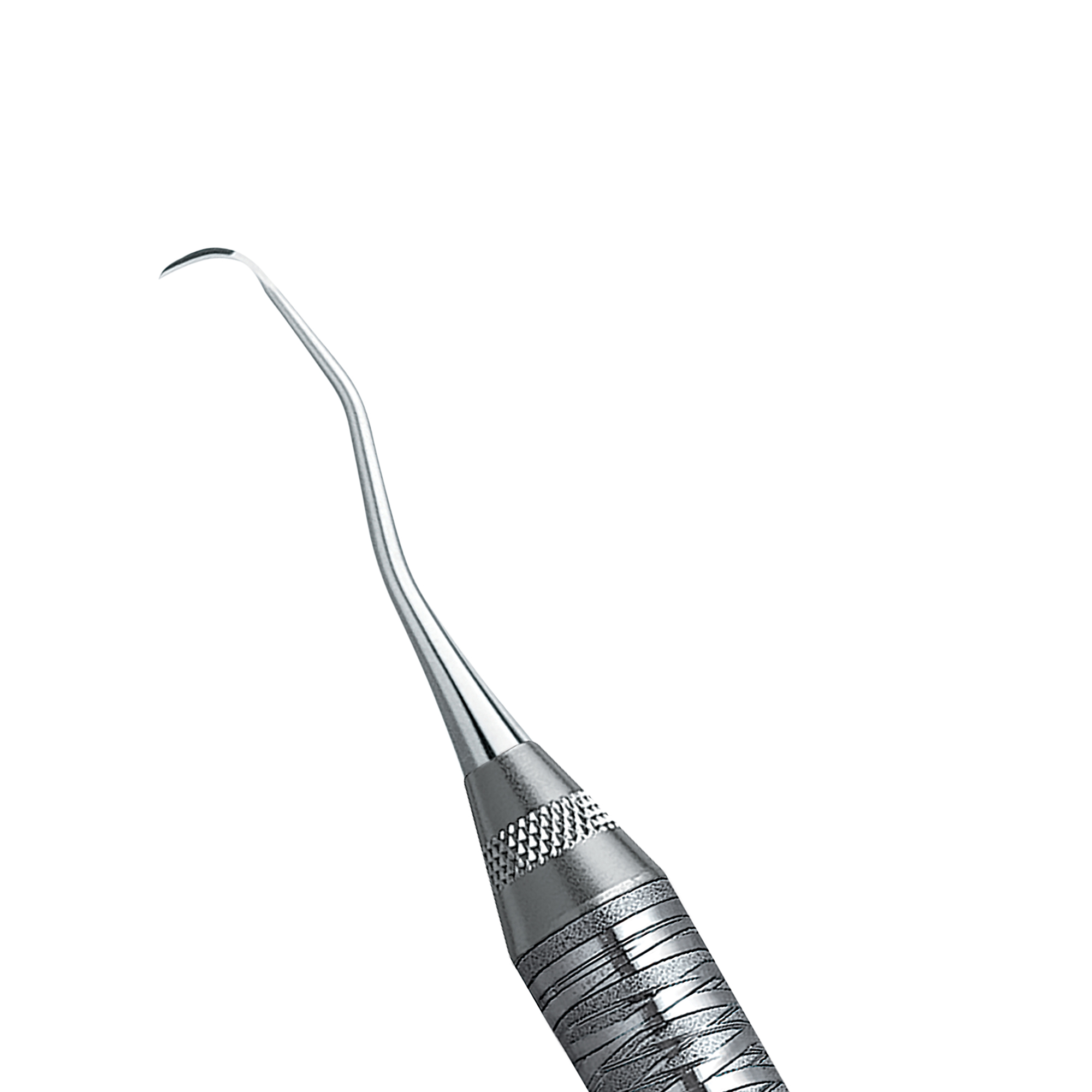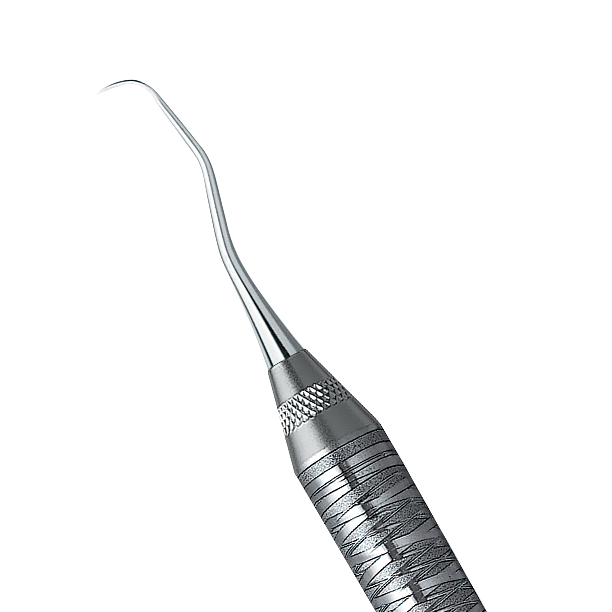 Rigid Gracey curettes, a thicker, stronger, and less flexible shank than the standard Gracey. Slight contra-angle. Double-ended, easy-grip handle.
