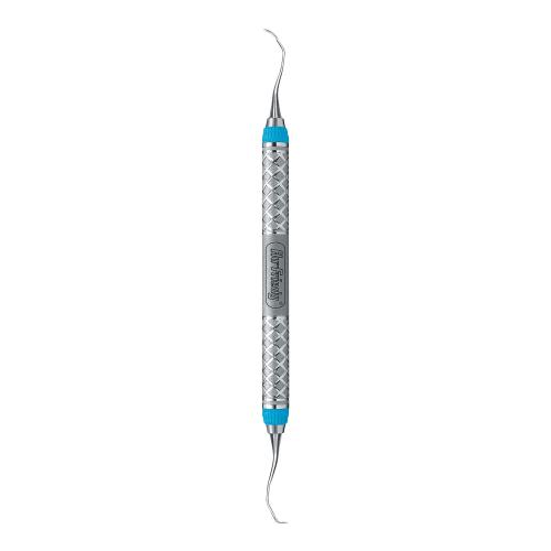 Extra Rigid Gracey curettes, Angulated to reach distal surfaces of posterior teeth. Double-ended, easy-grip handle.