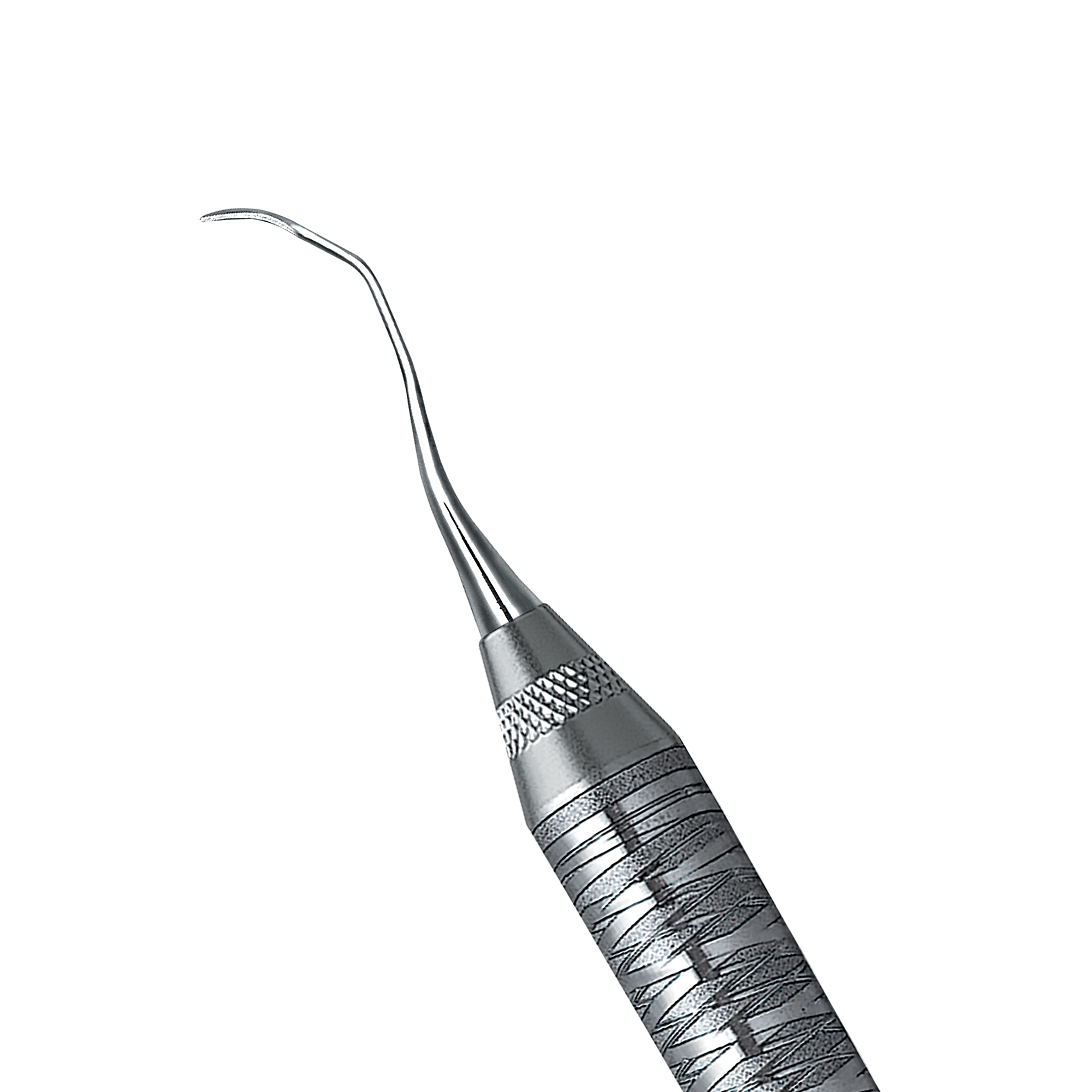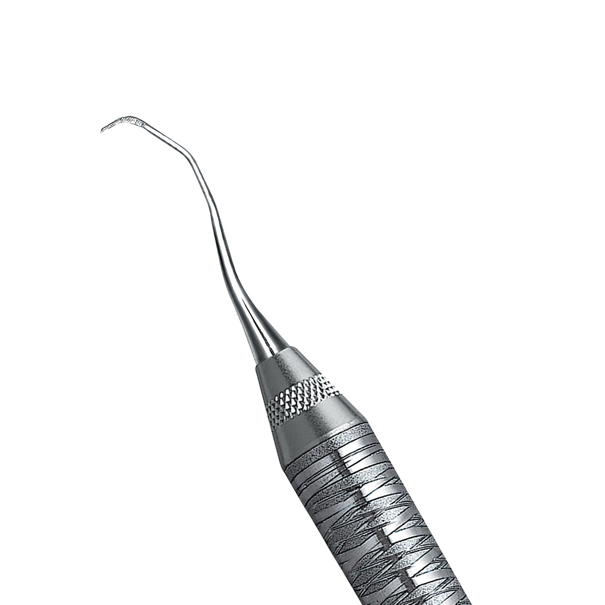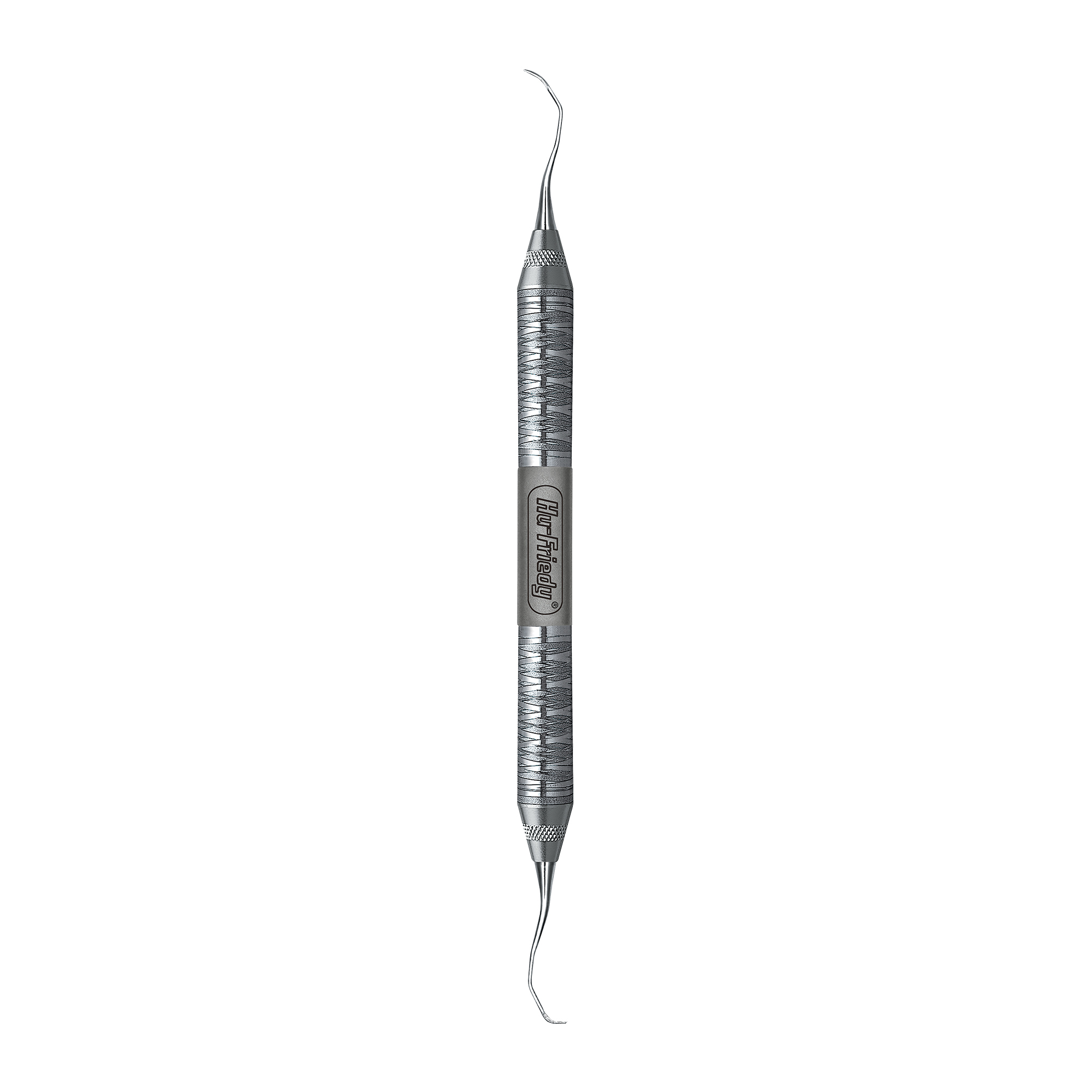 Rigid Gracey curettes, a thicker, stronger shank. Angulated to reach distal surfaces of posterior teeth. Double-ended, easy-grip handle.