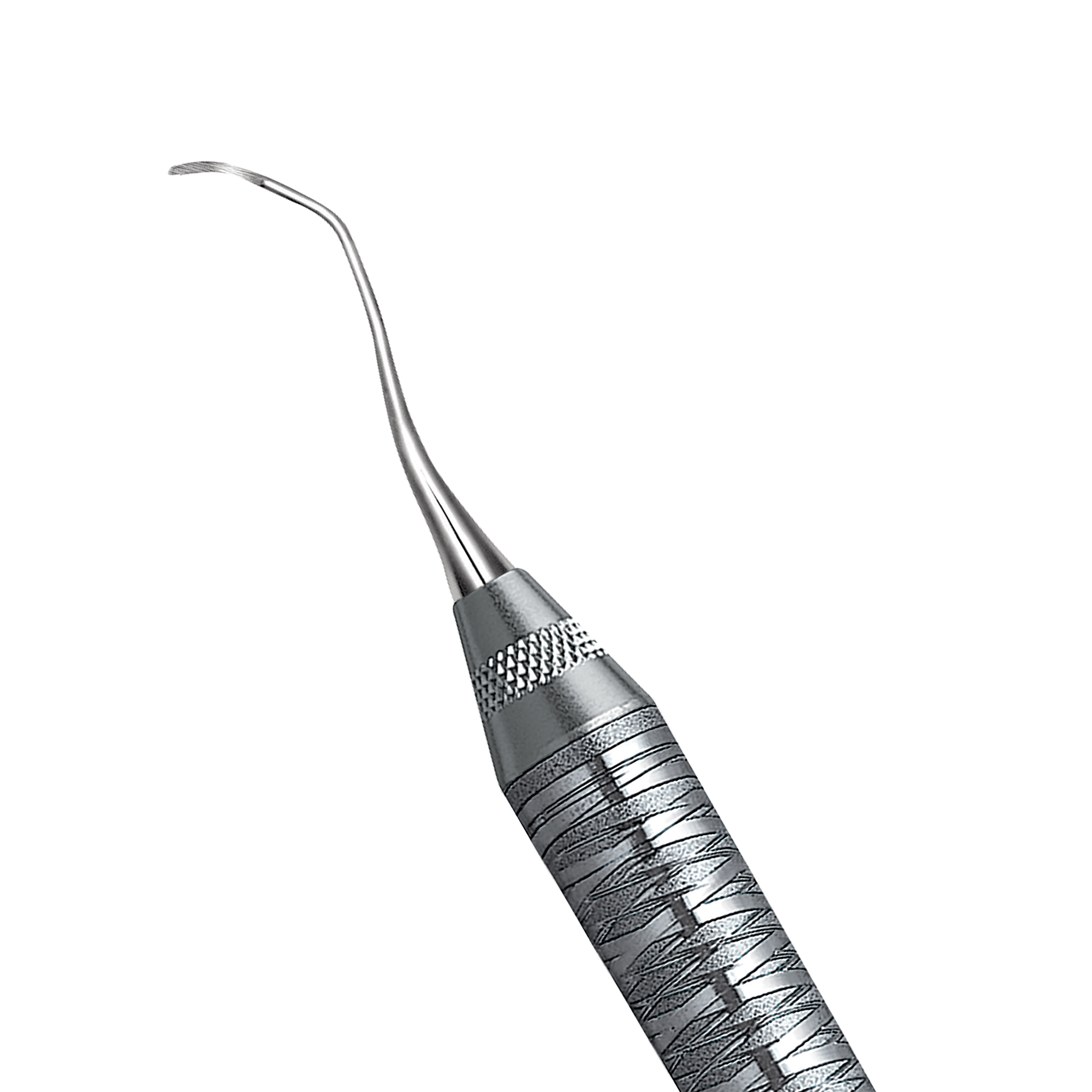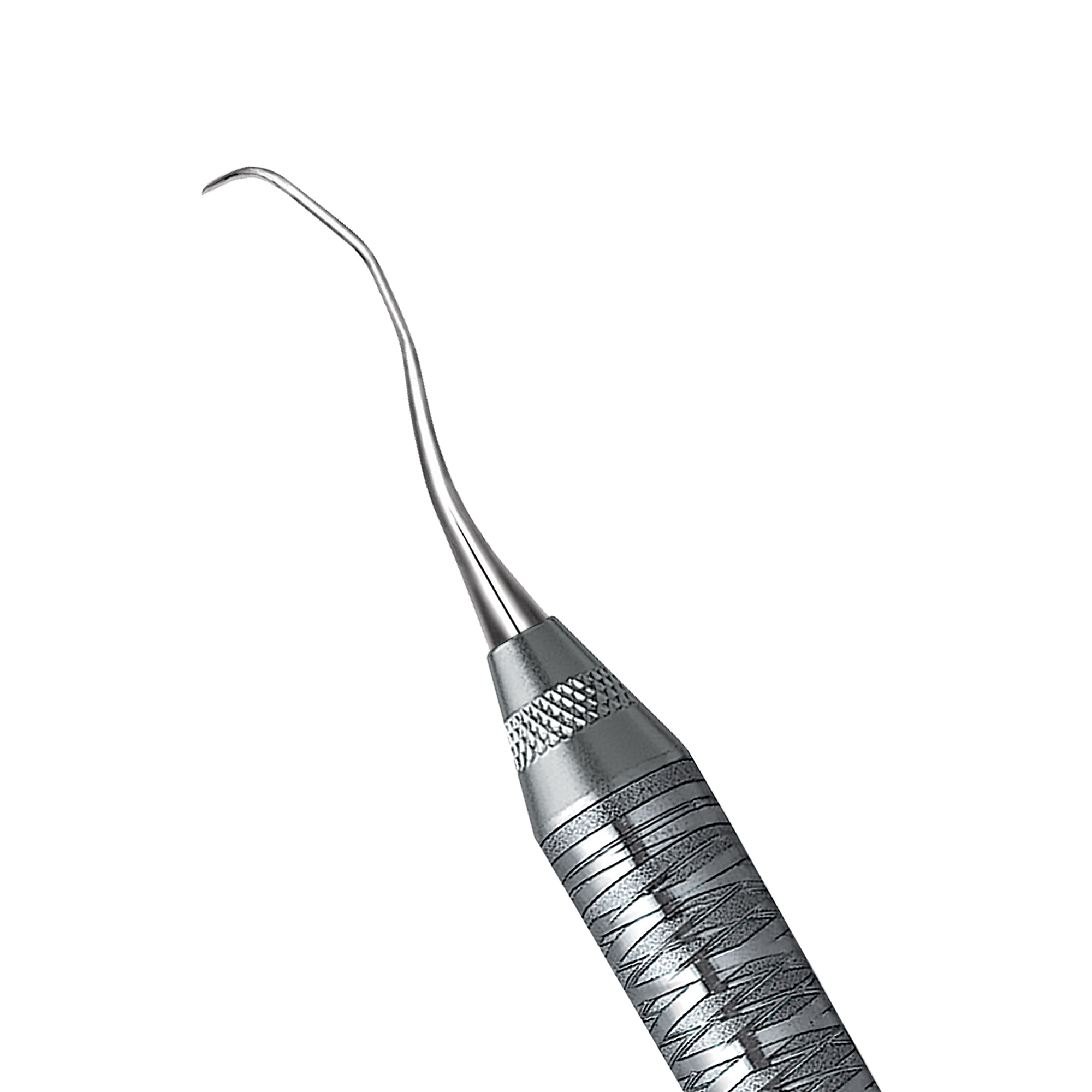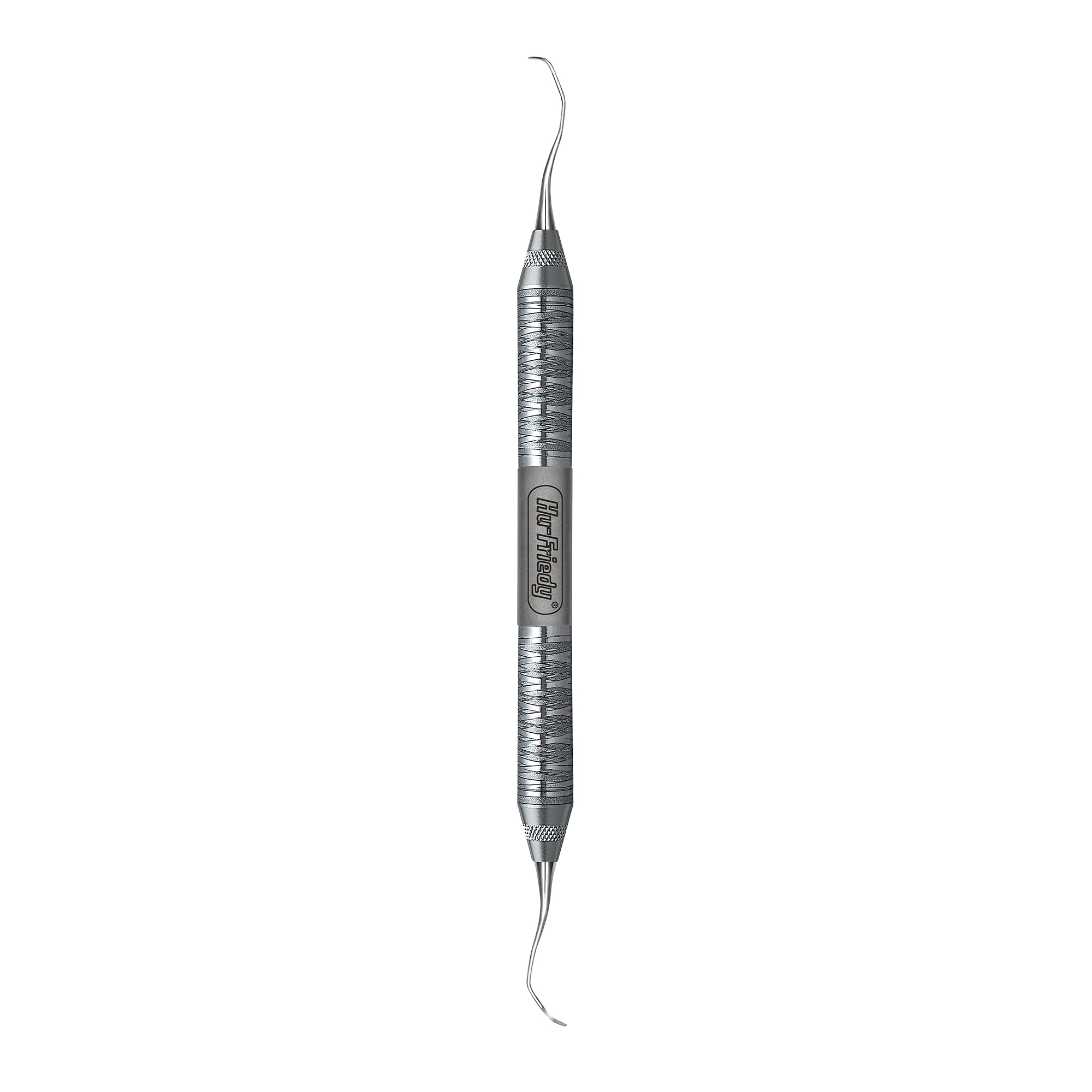 Rigid Gracey curettes, blades designed to reach mesial posterior surfaces. Double-ended, easy-grip handle.