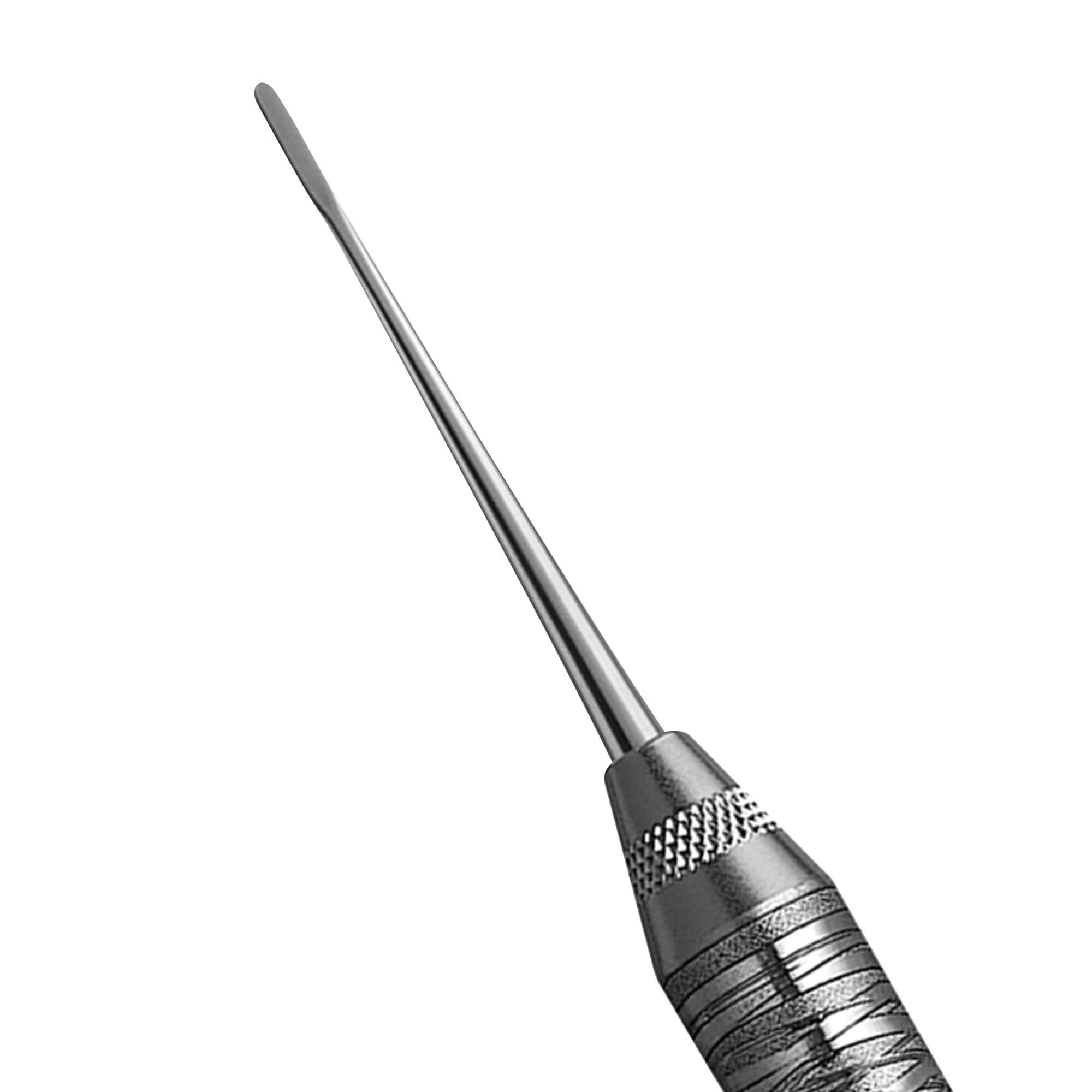 A retro-filling instrument with one angled and one straight spatula end. Useful for complex, deep canal apical procedures.