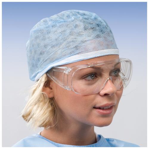 A light, transparent plastic eyewear with side shield designed to