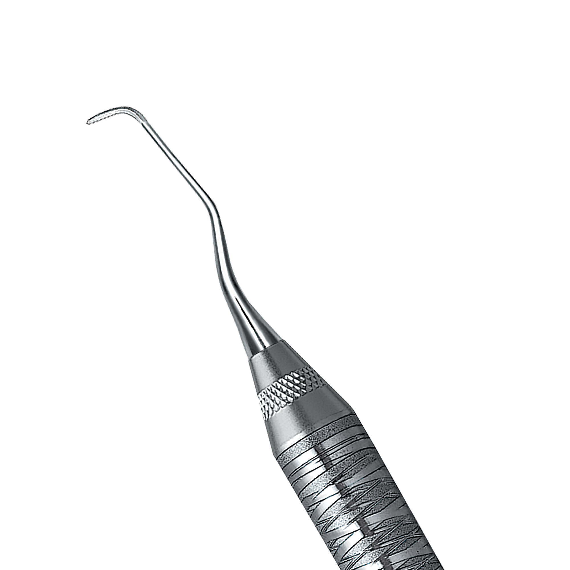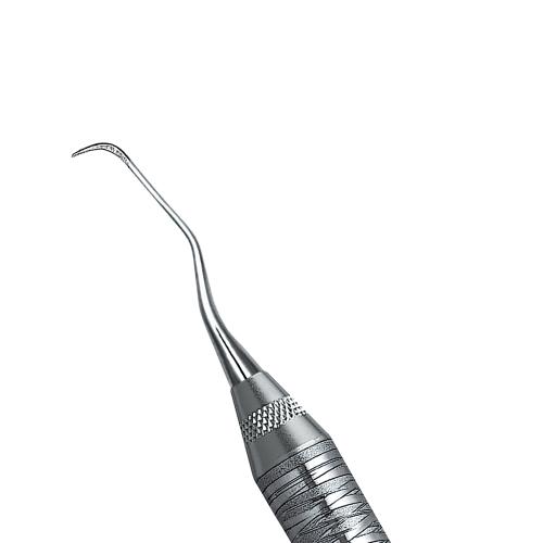 Rigid Gracey curettes, Angulated to reach mesial surfaces of posterior teeth. A thicker, stronger shank. Double-ended, easy-grip handle.