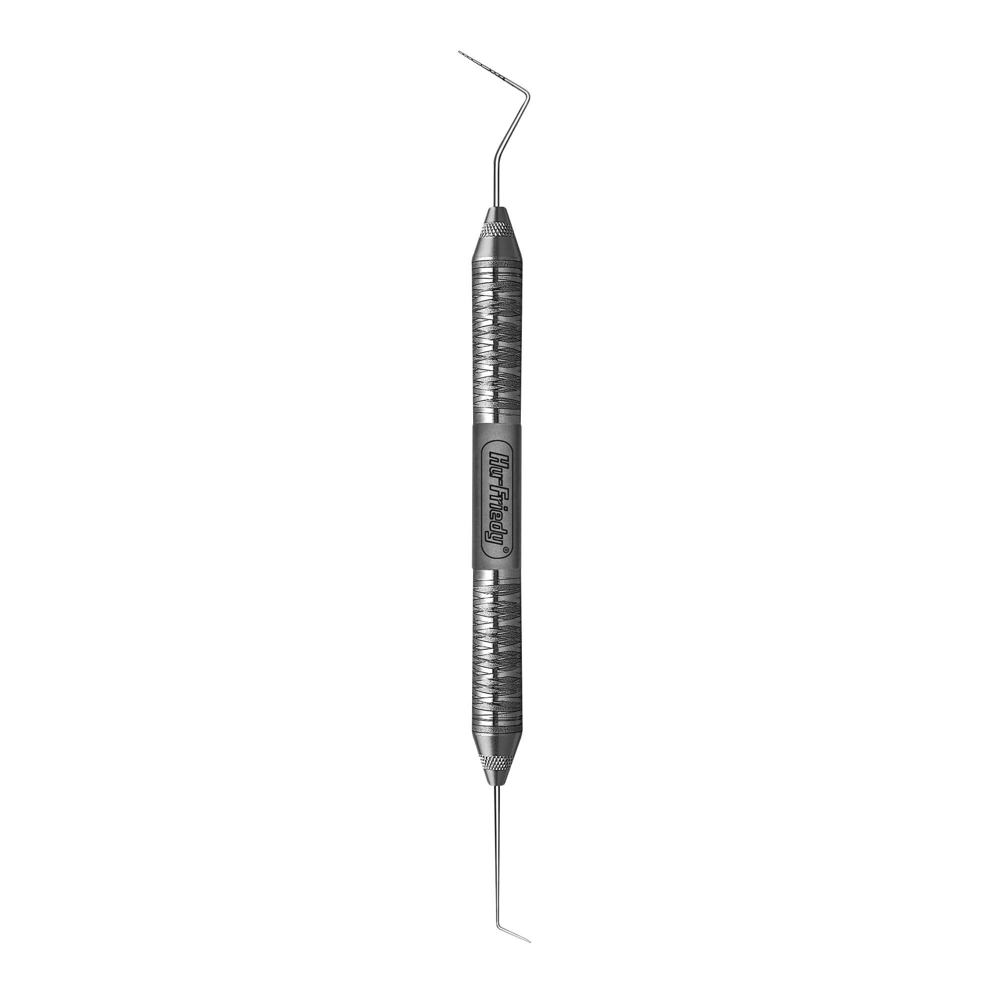 A double-ended instrument with an explorer on one end and a probe on the other, an Expro is excellent for dental examinations and charting.