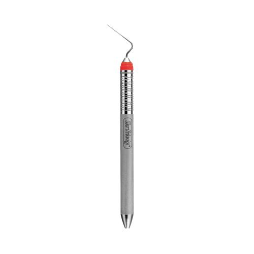 .25 mm diameter spreader. The working end is made from high quality nickel titanium which gives this spreader excellent strength, flexibility and memory. The ergonomic Satin Steel™ Colours handle makes identification easy. Ni-Ti spreaders are used for lateral condensation in cases with significant root curvature (dilaceration).