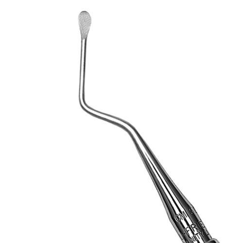 The 5 Molt Left surgical curette is designed for curettage, cyst removal and tooth socket debridement with 2.9mm working ends. Curette is angled for improved access to posterior. Made with surgical grade stainless steel.