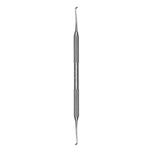Adapts to natural tooth curvature and left and right-side dental anatomy. Concave edge reduces mesial and distal flash on margins. Convex side is a conventional cleoid carver.